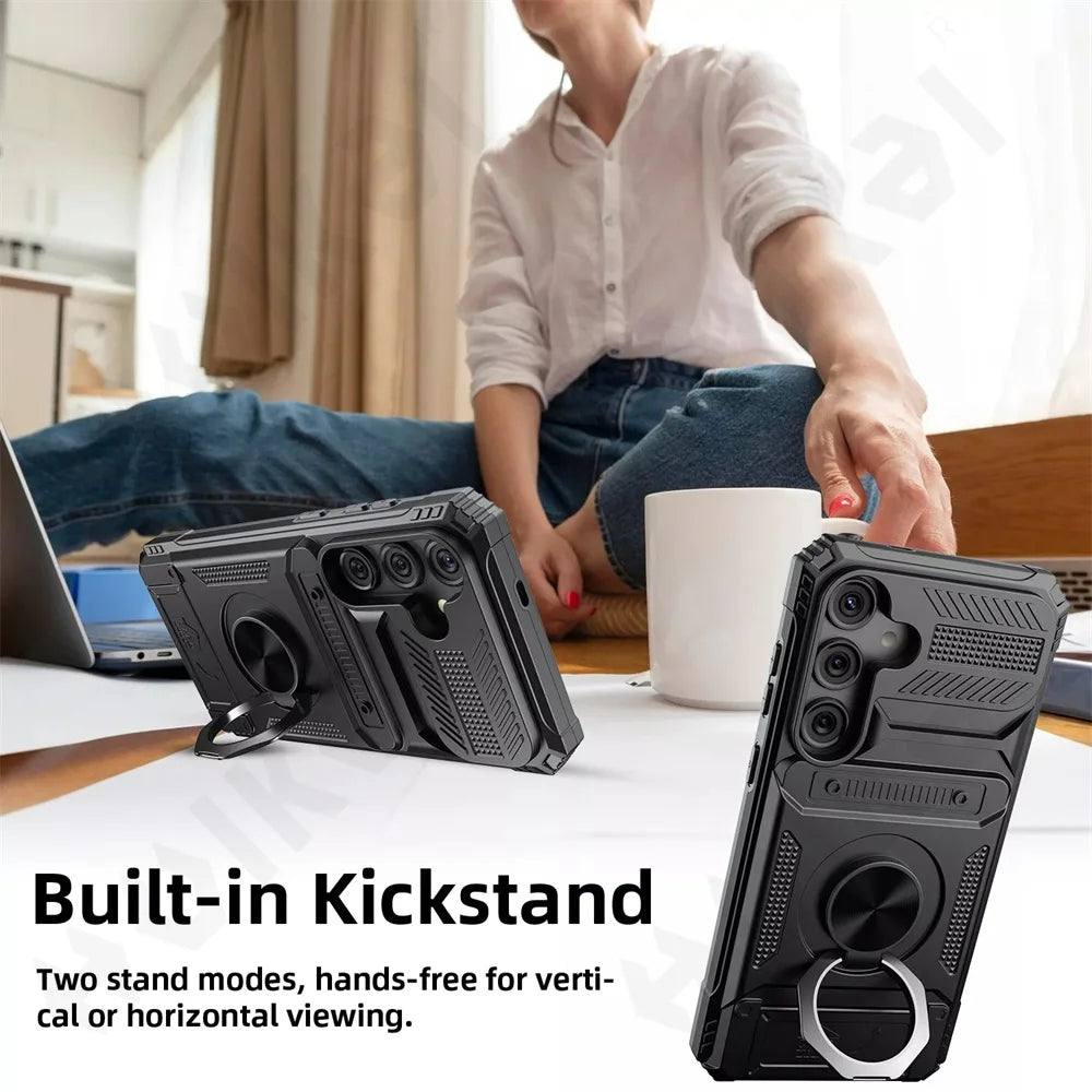 Coque pour Samsung Galaxy S25 Edge S24 S23 Ultra Plus FE A56 A36 A55 5G, anneau rotatif magnétique, béquille, chute lourde, portefeuille