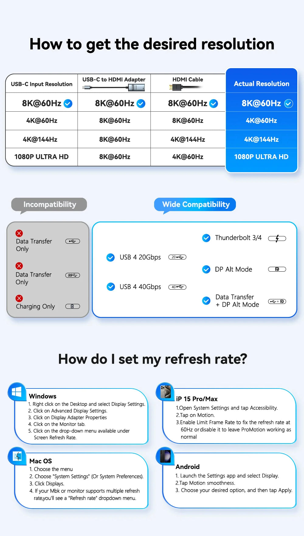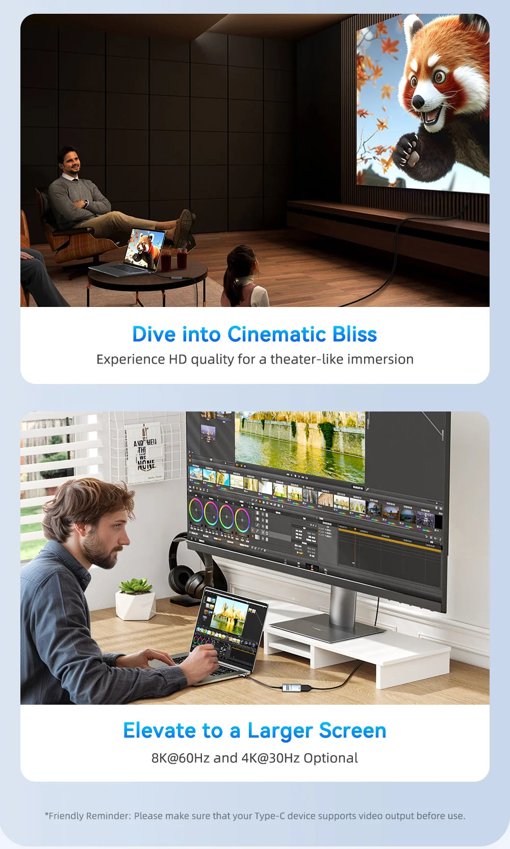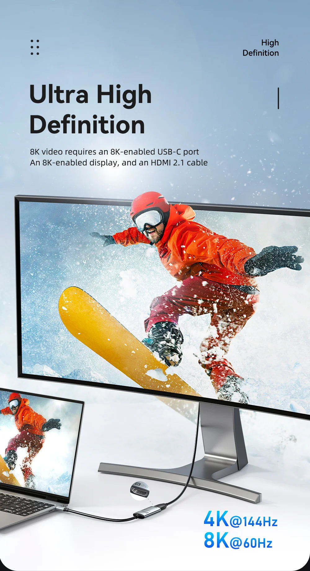 Essager adaptateur HDMI vers USB Type C pour iPhone MacBook Pro Air iPad Samsung Galaxy 8K @ 60Hz 4K @ 120Hz/144Hz convertisseur de câble TV HD