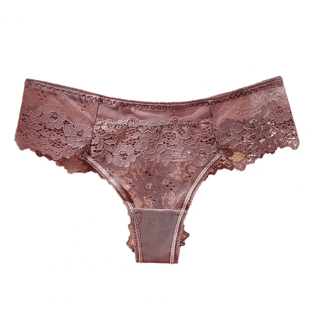 Femmes culottes transparent évider dentelle couleur unie taille basse doux respirant Anti-septique élastique dame caleçons slips